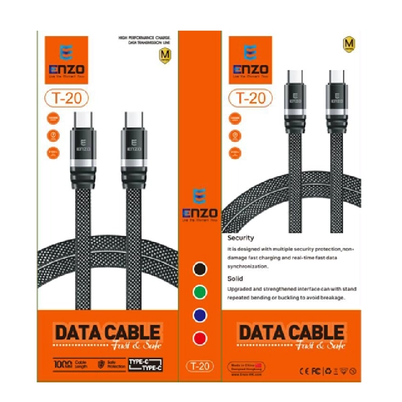کابل ENZO T-20 با طراحی دو سر USB-C، برای کاربرانی ساخته شده که به دنبال شارژ سریع، انتقال داده مطمئن و دوام بالا هستند. این کابل با طول استاندارد و ساختار تقویتشده، گزینهای مناسب برای گوشیهای هوشمند، تبلتها، پاوربانکها و حتی لپتاپهای سبک مجهز به درگاه تایپسی محسوب میشود.