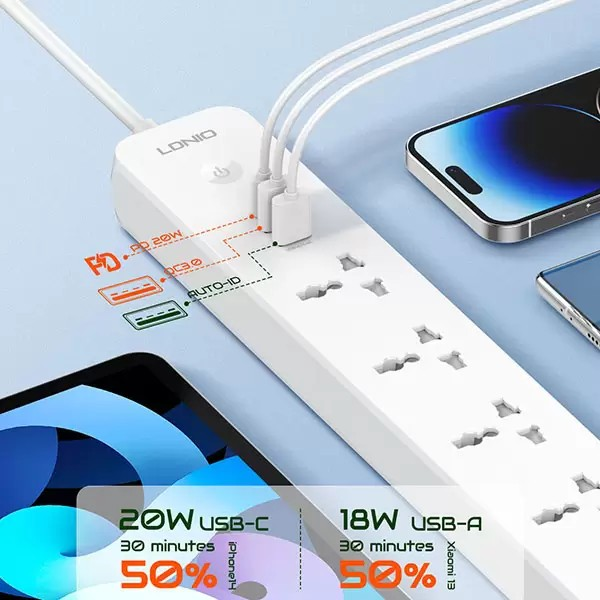 با چندراهی برق و شارژر LDNIO SC5319، دیگه نگران کمبود پریز یا سرعت پایین شارژ نباش! طراحی هوشمند، توان بالا و ایمنی چندلایه، این محصول رو به یکی از بهترین انتخابها برای خانه، محل کار یا سفر تبدیل کرده.