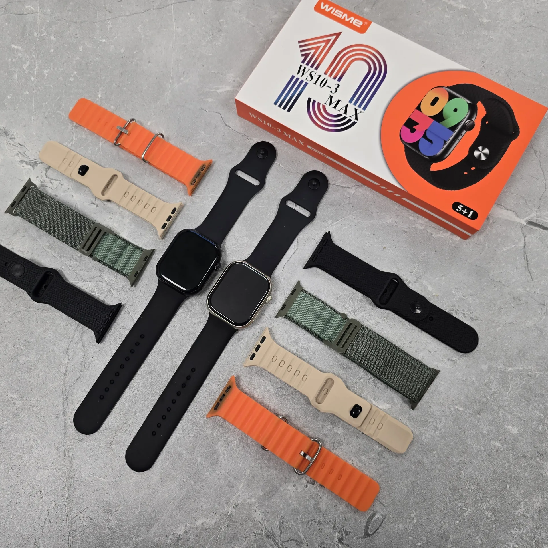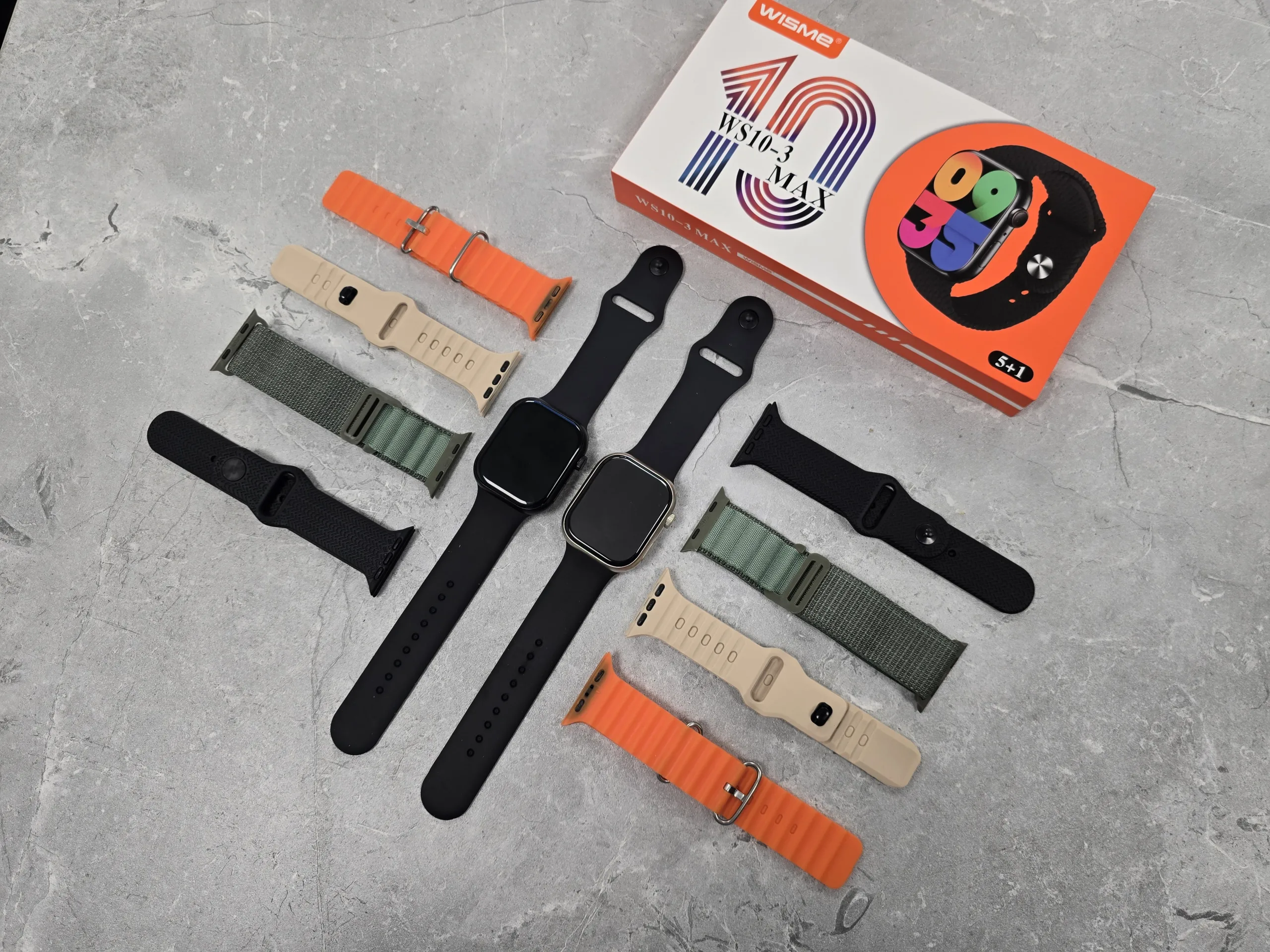 - داخل بستهبندی اسمارت واچ WS10-3 Max پنج عدد بندسیلیکونی،لوپ و همینطور یک شارژر وایرلسی وجود دارد.